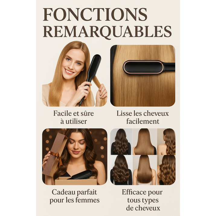 👉 Idéal pour lisser, onduler ou simplement dompter vos cheveux, ce peigne lissant deviendra vite votre allié beauté incontournable.
